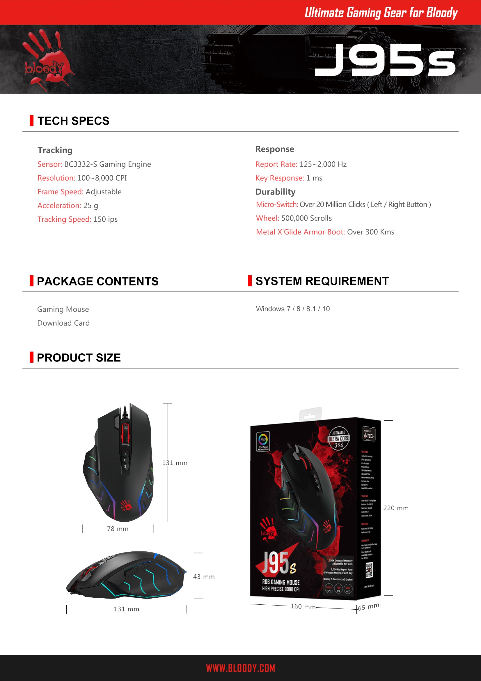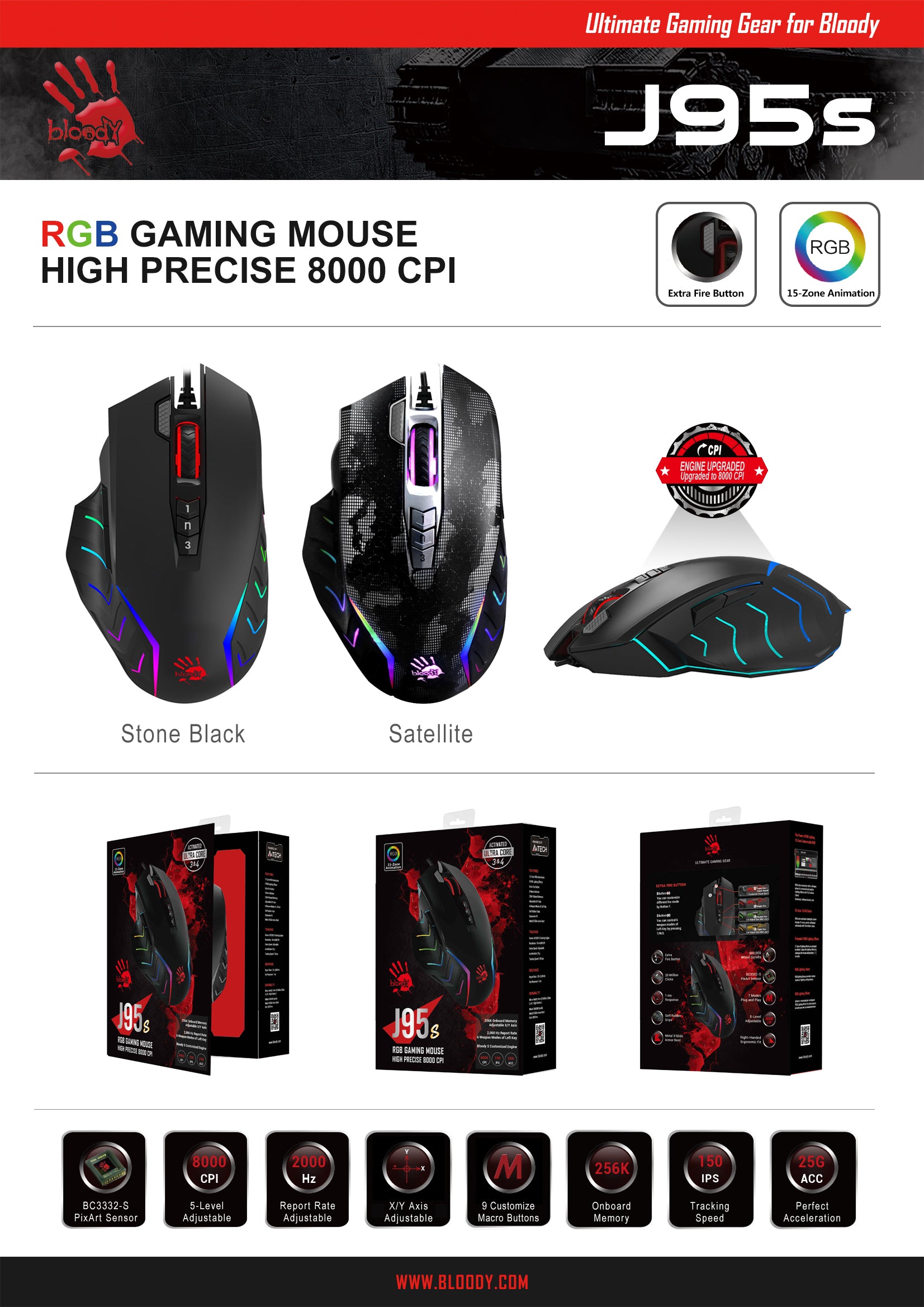 The J95S RGB Gaming Mouse features a high-precision optical sensor that ensures accurate and responsive tracking for competitive gaming. Its ergonomic design promotes comfort during extended play sessions, while customizable RGB lighting adds dynamic visual appeal. Equipped with programmable buttons, the J95S allows tailored control setups to enhance gameplay efficiency and adaptability. Engineered for durability and performance, it is an ideal choice for serious gamers seeking precision and style.